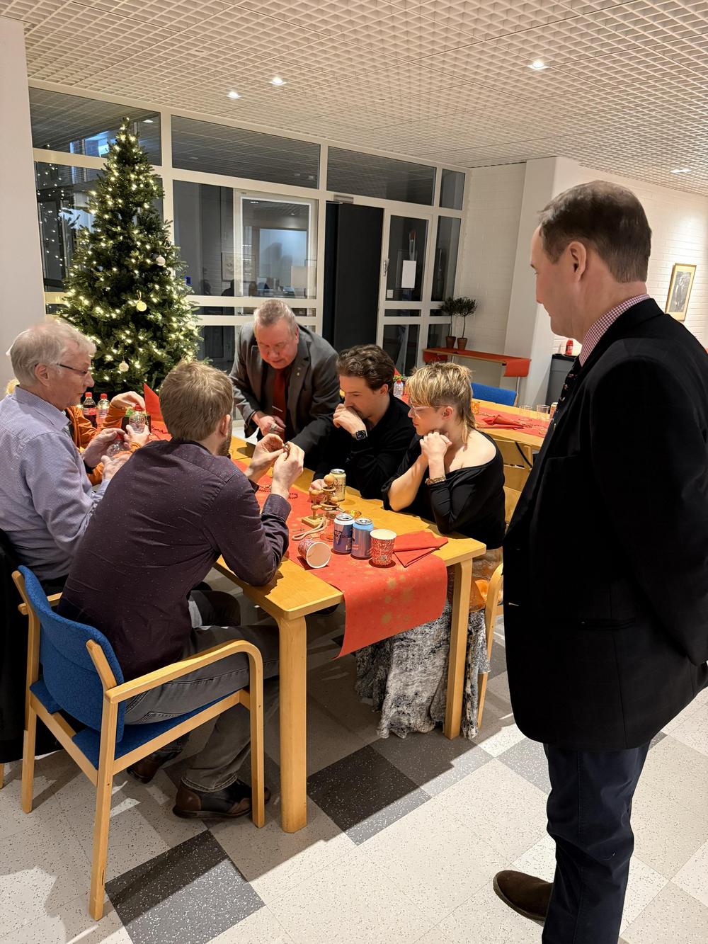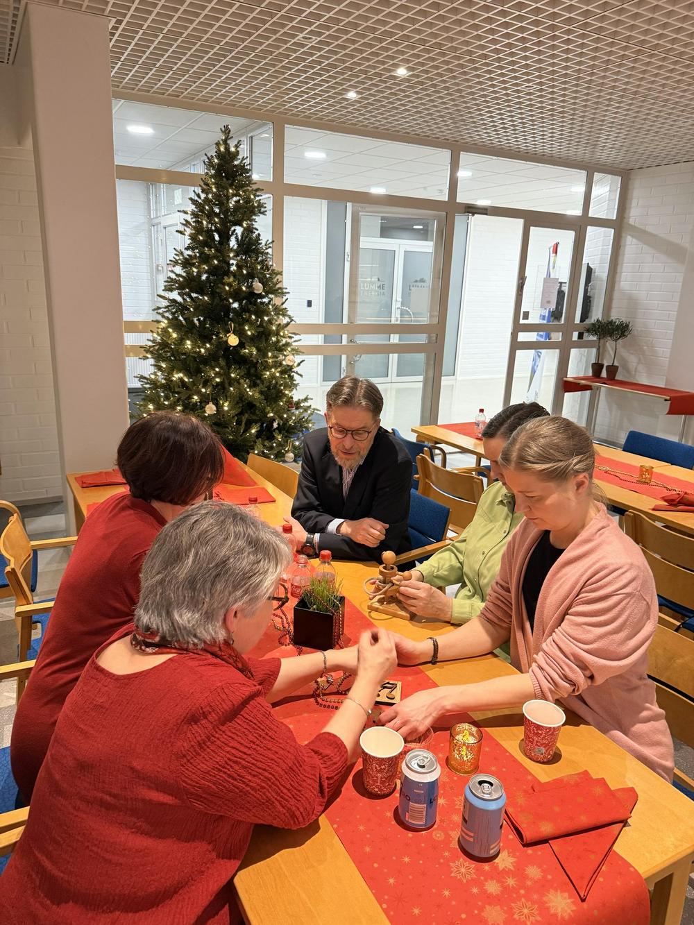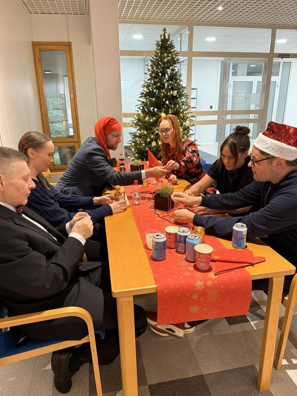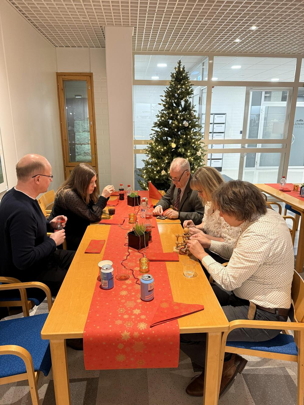 Perinteisempi osuus pikkujouluista aloitettiin nauttimalla Piken Köökin tarjoiluista. Tarjoilut olivat runsaat ja maittavat. Joulupäivälliseltä siirryimme ratkomaan visaisia tehtävärasteja. Tehtävistä suoriuduttiin luovasti ja erinomaisesti kaikkien ryhmien toimesta. Tekemisen innokkuuden ja palautteen perusteella annetut tehtävät olivat mielenkiintoisia ja sopivan haastavia.