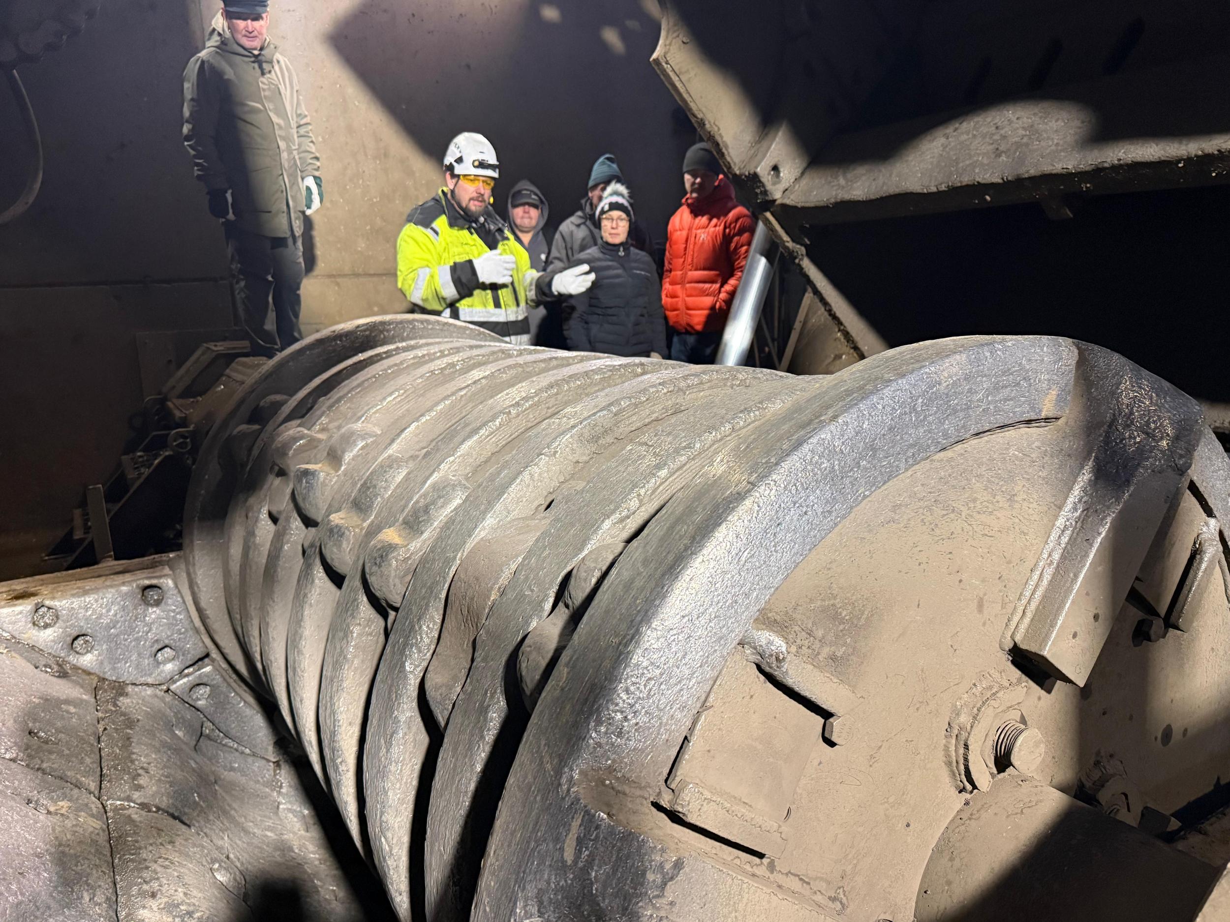 Kiitollisina näkemäämme ja kuulemaamme ryhmämme ajoi ”tien toiselle puolelle” Ekokympin alueelta Kajaanin Romulle, kts. https://kajaaninromu.fi/ ja https://krnordic.fi/asiantuntijuus/kaupunkikaivostoiminta/. Siellä meitä oli opastamassa alan ja alueen todellinen asiantuntija, kunnossapidon esimies Erkki Ojala.